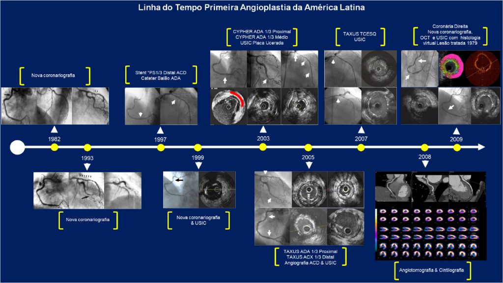 Em agosto de 1979, dois anos e um mês após a realização da primeira angioplastia no mundo por Andreas Grüntzig (setembro de 1977), recebemos na Santa Casa de Misericórdia de Curitiba (SCMC) um paciente (A. S. O.) de 55 anos, sexo masculino, com quadro de angina aos esforços. O mesmo foi submetido a uma cineangiocoronariografia, que mostrou uma lesão crítica (estenose avaliada entre 75-80%), localizada no segmento proximal da artéria coronária direita (ACD). A artéria coronária esquerda (ACEsq) apresentava aspecto angiográfico normal e o ventrículo esquerdo (VE) uma hipocinesia discreta na parede inferior com a válvula mitral competente.
