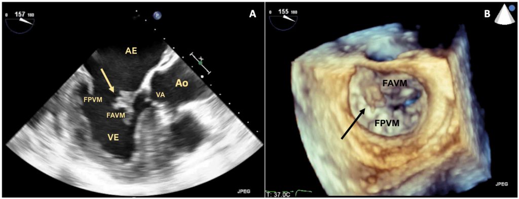 Aneurismas da válvula mitral (AVM) são incomuns e geralmente evoluem de forma aguda como manifestação de endocardite infecciosa (EI). O AVM como uma complicação tardia de EI em pacientes com cardiomiopatia hipertrófica obstrutiva (CMH) é bastante incomum, levantando considerações em relação ao papel do processo infeccioso e das condições hemodinâmicas inerentes à cardiomiopatia. , Apresentamos um relato de caso de um paciente com CMH e ruptura de aneurisma no folheto da válvula mitral (VM) secundário a EI tratada anteriormente.