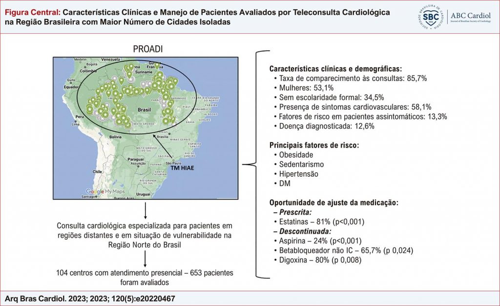As doenças cardiovasculares são a principal causa de morte no mundo. Regiões brasileiras geograficamente remotas e de baixa renda carecem de consultas especializadas. Não se tem conhecimento total acerca do manejo por telemedicina dessa população por parte de cardiologistas.