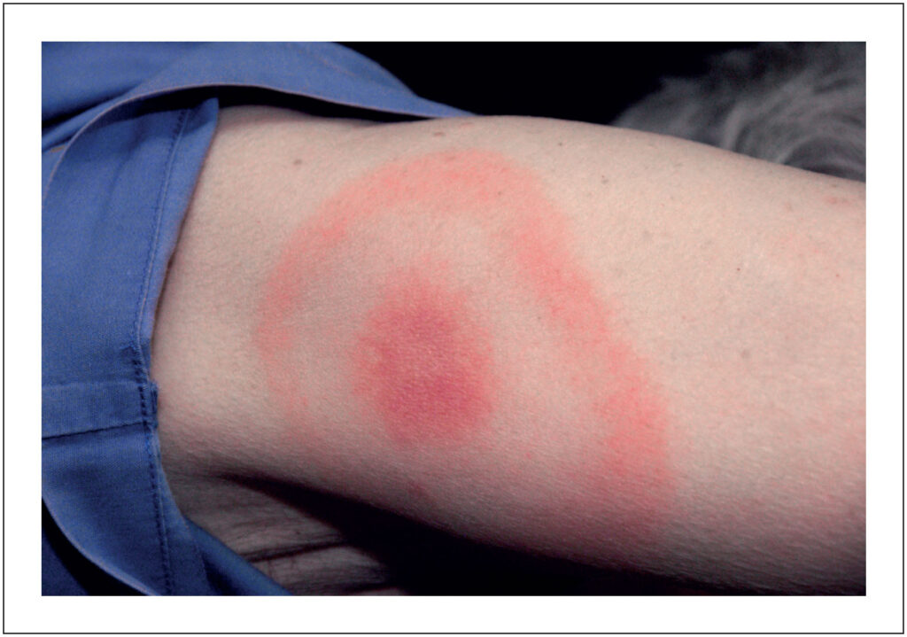 A doença de Lyme (DL) é a doença mais comum transmitida por carrapatos nos Estados Unidos, causada pela espiroqueta Borrelia burgdorferi. A apresentação mais comum é a erupção cutânea eritema migrans, observada em mais de 90% dos casos durante o estágio inicial localizado., Semanas ou meses após a picada do carrapato, a doença pode progredir para manifestações extracutâneas na fase disseminada inicial, levando a sintomas cardíacos, neurológicos e articulares.,