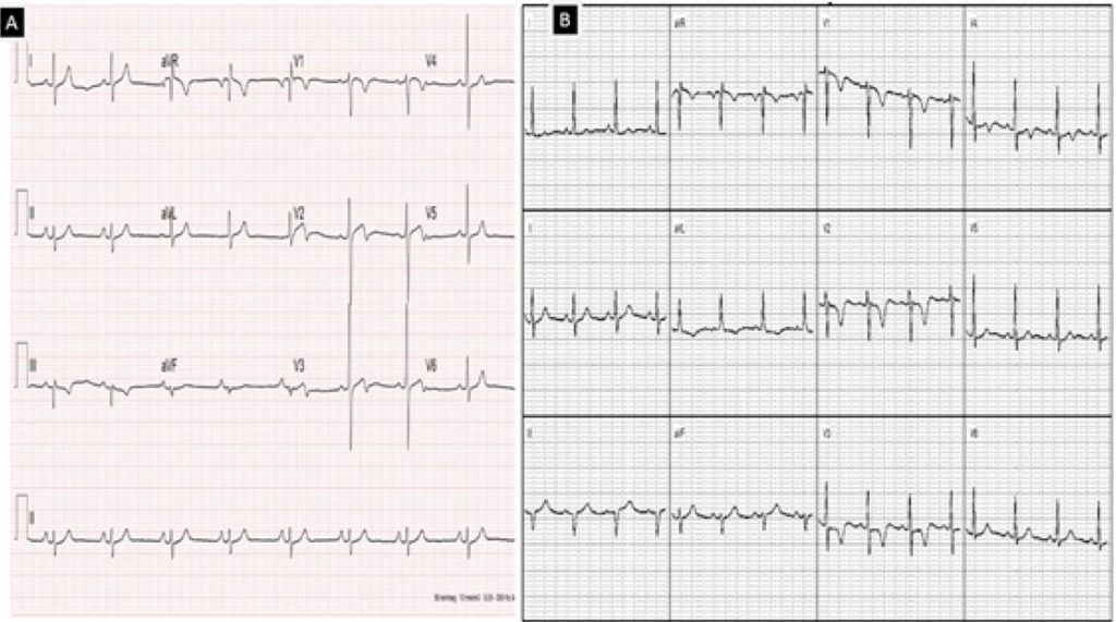 Descrita originalmente durante a admissão hospitalar (60% à admissão e 40% no seguimento) de pacientes apresentando angina instável, foi caracterizada pela ocorrência de 2 padrões eletrocardiográficos, padrão A em 25% dos pacientes e B em 75% dos pacientes.