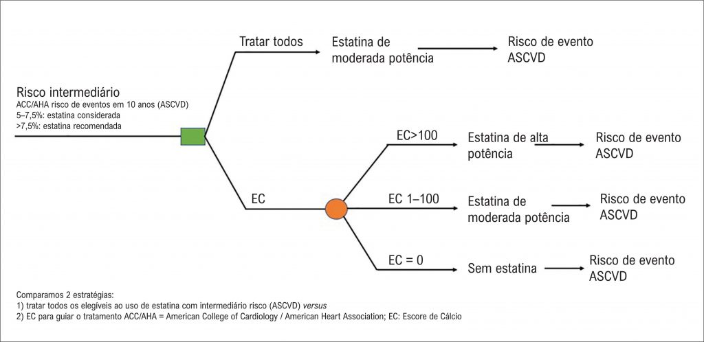 O emprego do escore de cálcio no auxílio da estratificação de risco cardiovascular pode ser ferramenta com melhor custo-efetividade em comparação à estratégia convencional.