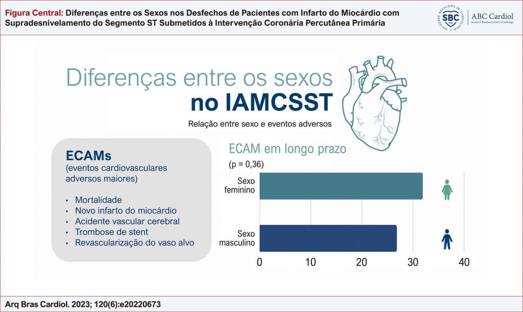 Em uma coorte prospectiva contemporânea de pacientes com IAMCSST submetidos à ICPp, pacientes do sexo feminino apresentaram idade mais avançada e mais comorbidades no basal que os pacientes do sexo masculino, mas não houve diferenças significativas entre os sexos quanto aos desfechos adversos no hospital ou em longo prazo.