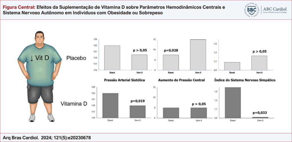 Nesta amostra, a suplementação diária de vitamina D durante oito semanas resultou em melhora dos níveis pressóricos, parâmetros hemodinâmicos centrais e do equilíbrio autonômico.