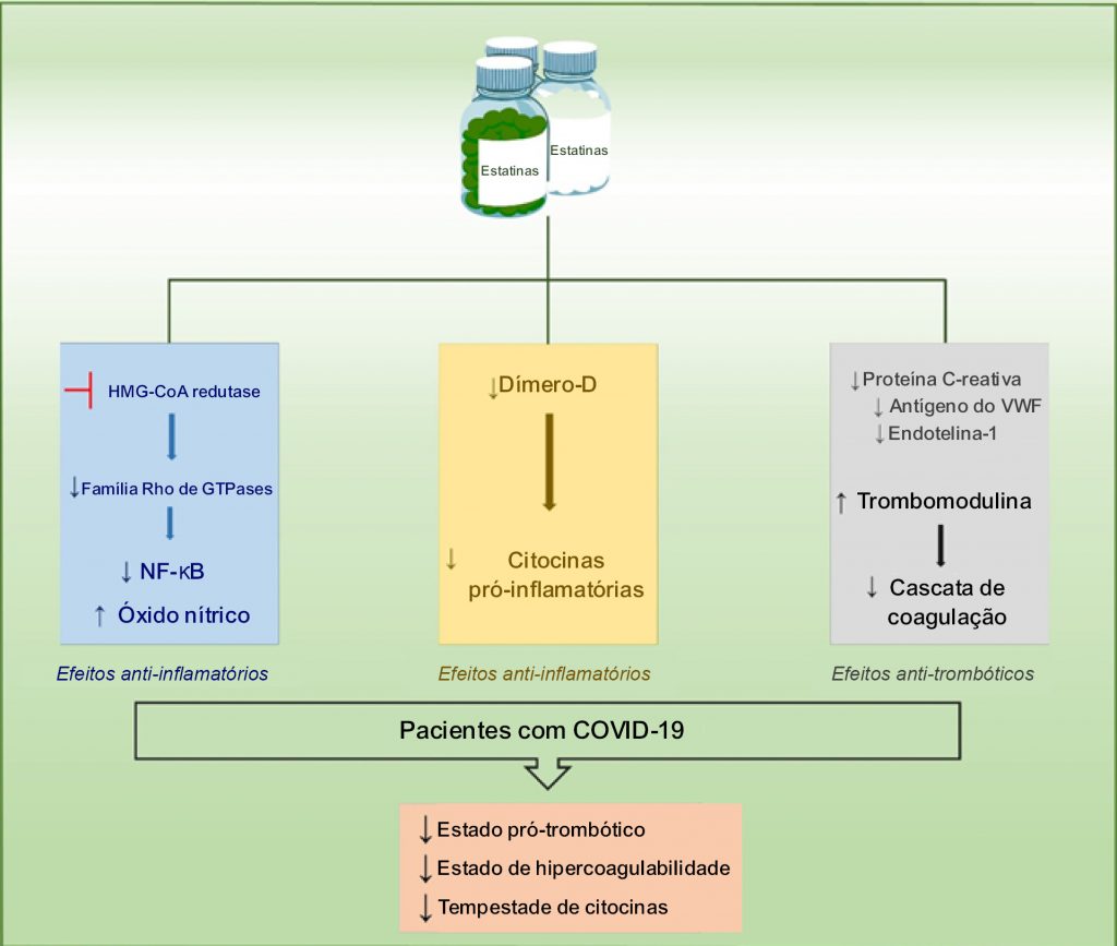 Com base nesses achados prévios, foi hipotetizado que o uso de terapias hipolipemiantes como as estatinas poderiam agravar a infecção por COVID-19. No entanto, sabe-se que os níveis de colesterol sérico podem cair em pacientes com infecções virais ou bacterianas ativas,, uma vez que o LDL e o HDL desempenham um papel no sistema imunológico. Por outro lado, a hiperlipidemia pode comprometer a resposta imunológica e agravar ainda mais o estado inflamatório dos pacientes com COVID-19, aumentando o risco cardiovascular.Desta maneira, surge a seguinte pergunta: as estatinas deveriam ou não ser suspensas em pacientes com COVID-19?