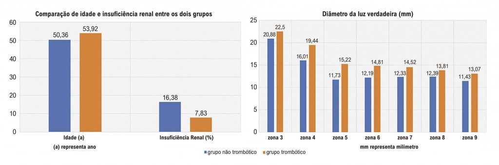 A idade e a função renal estiveram associadas à trombose na falsa luz. Potencialmente, a diferença entre o diâmetro da luz verdadeira e o da falsa luz pode influenciar na trombose da falsa luz.