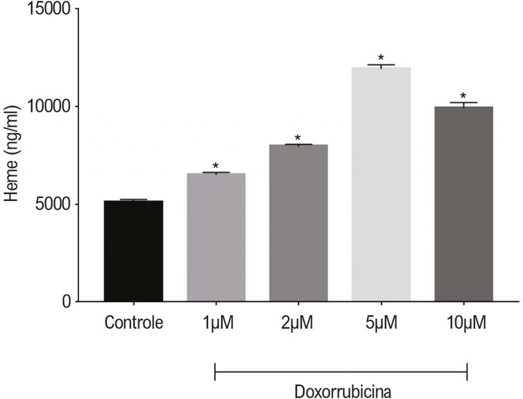 A doxorrubicina está associada à cardiotoxicidade e à morbidade cardíaca tardia. O heme está relacionado ao stress oxidativo celular. Entretanto, sua regulação específica em cardiomiócitos sob os efeitos de doxorrubicina ainda não foi documentada.