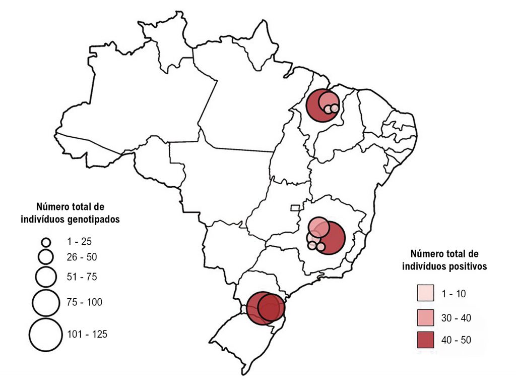 Foram incluídos 105 casos índices e 409 familiares de primeiro grau. O rendimento dessa abordagem foi de 4,67 familiares por caso índice, o qual é significativamente melhor (p < 0,0001) do que a taxa geral do HipercolBrasil (1,59). Identificamos 36 CIs com variante patogênica ou provavelmente patogênica para HF e 240 familiares de primeiro grau afetados. Conclusão: Nossos dados sugerem que, uma vez detectadas, regiões geográficas específicas justificam uma abordagem direcionada para a identificação de aglomerações de indivíduos com HF.