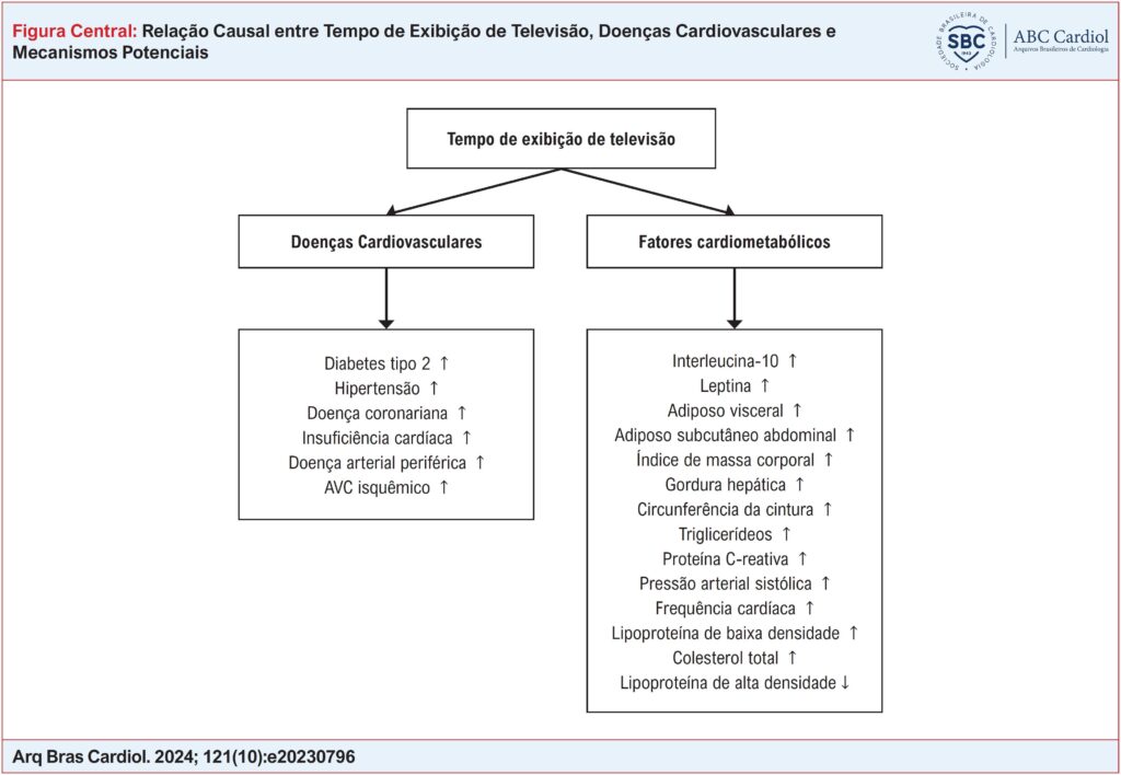O tempo de exibição de televisão foi causalmente associado ao aumento do risco de doenças cardiovasculares, o que pode ser explicado por mecanismos metabólicos e inflamatórios.