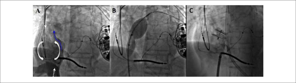 Further investigation revealed a right-to-left shunt through a patent foramen ovale (PFO) on a trans-thoracic echocardiogram (TTE). Previous TTE examinations over the past 5 years did not show any valvular pathology or right-to-left shunt through the PFO. The patient was on direct oral anticoagulant therapy for atrial fibrillation, which was electively stopped 2 days before the procedure, and low molecular weight heparin was initiated as a bridging therapy.