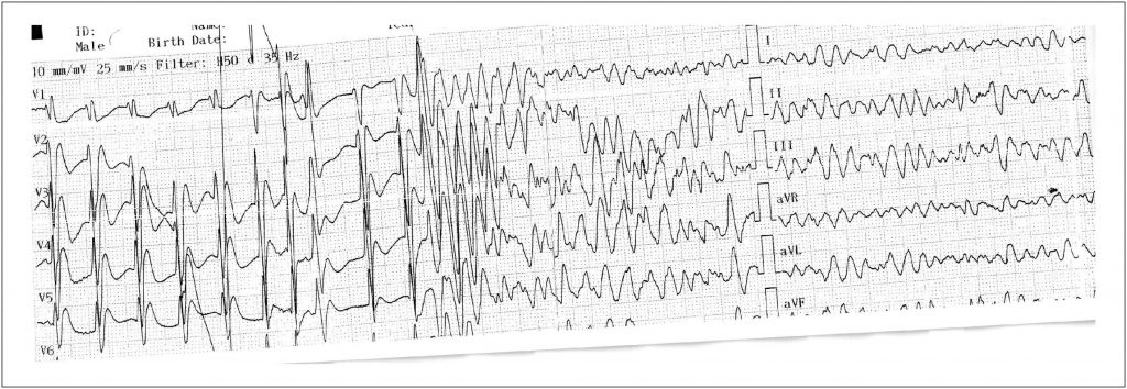 This case report details the diagnosis and management of 5-FU cardiotoxicity upon the development of VF in a patient treated with 5-FU.