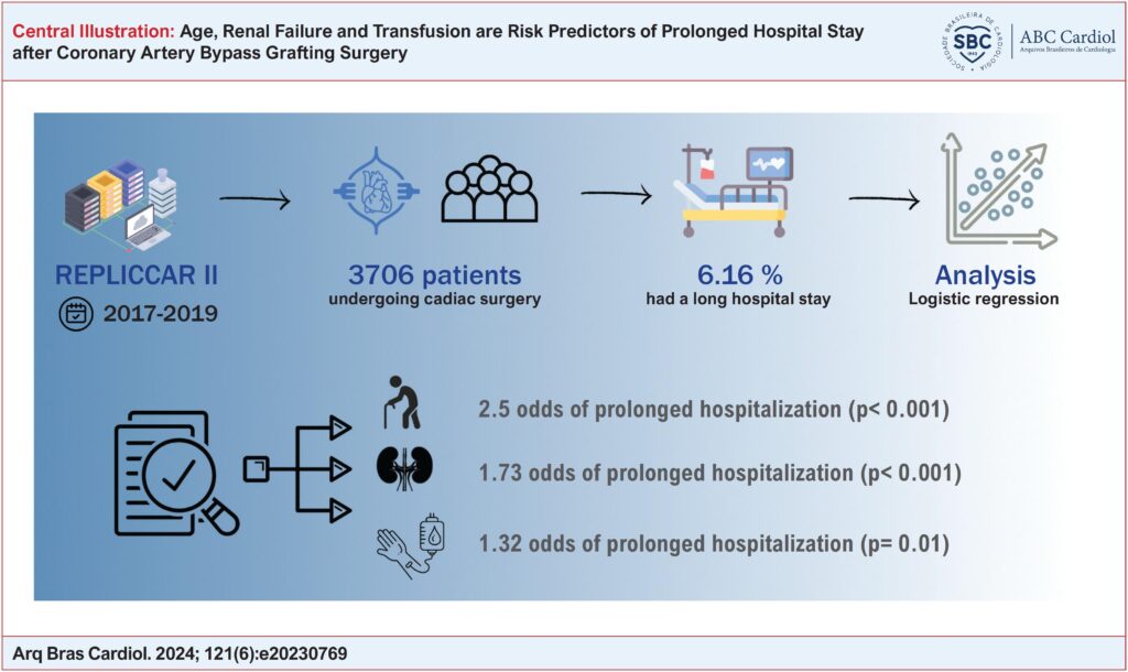 This study aimed to identify preoperative and intraoperative risk predictors for prolonged hospitalization after coronary artery bypass grafting (CABG) surgery in the state of São Paulo, Brazil.