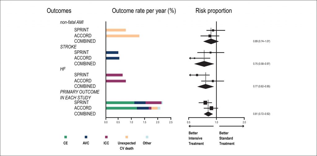 Combination of the outcomes of the SPRINT and ACCORD studies, and