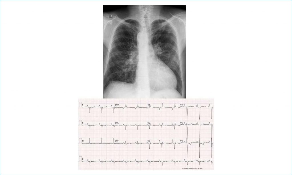 The patient had no symptoms from birth to young adulthood, when he developed more severe hypoxia, which required a Blalock-Taussig anastomosis on the right. Five years ago, worsening of hypoxia was again observed, with hemapheresis every 6 months, in addition to fatigue on small to medium exertion and with associated ventricular dysfunction. He used f warfarin, carvedilol and enalapril, in addition to nasal oxygen at night.
