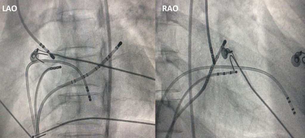 Atrial tachycardia (AT) ablation with earliest activation site close to the His-Bundle is a challenge due to the risk of complete AV block by its proximity to His-Purkinje system (HPS). An alternative to minimize this risk is to position the catheter on the non-coronary cusp (NCC), which is anatomically contiguous to the para-Hisian region.