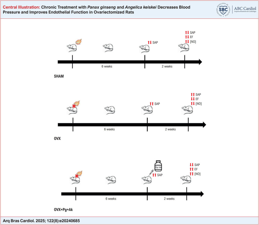 Menopause is a natural physiological process that can impact various systems and organs, often leading to increased blood pressure. The combination of Panax ginseng and Angelica keiskei (Pg + Ak) is a formulation known to improve vascular function.
