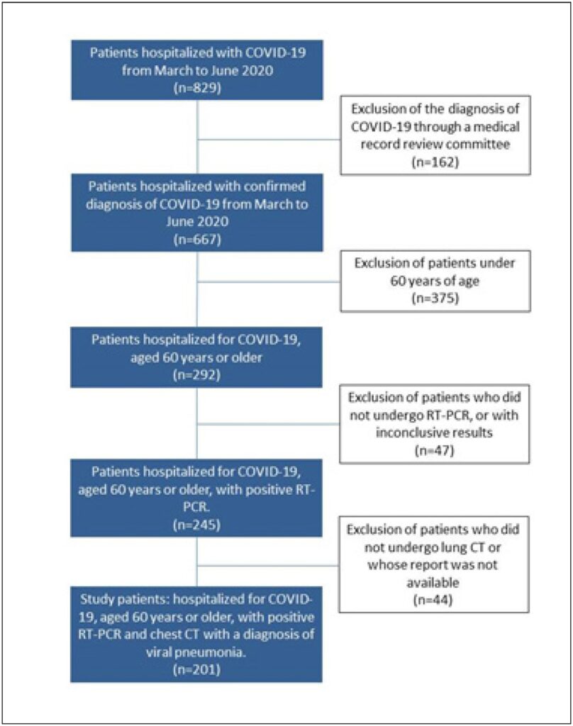 To analyze, upon hospital admission, variables with predictive potential for the occurrence of NOAF in patients with COVID-19 pneumonia.