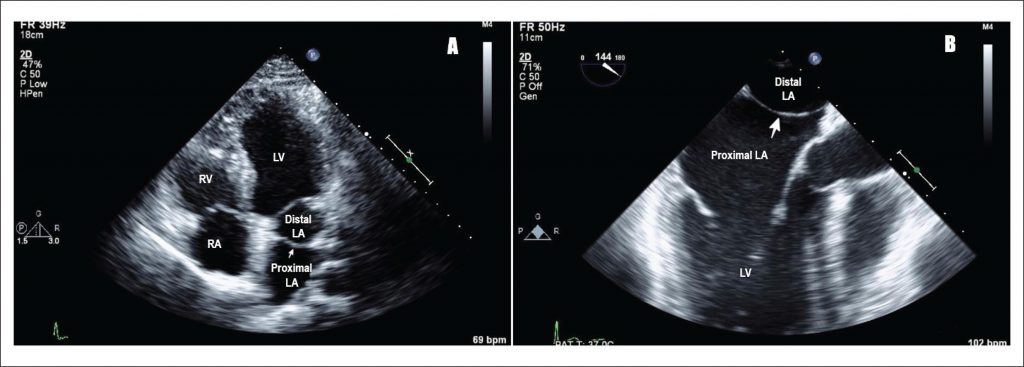 A 25-year-old male presented to clinic with complaints of palpitations. Transthoracic echocardiogram (TTE) showed presence of a membrane in left atrium suggestive of cor triatriatum []. This finding was confirmed with transesophageal echocardiogram (TEE), which revealed a membrane in the left atrium attaching at the Coumadin ridge and the atrial septum, just caudal to the fossa ovalis [].