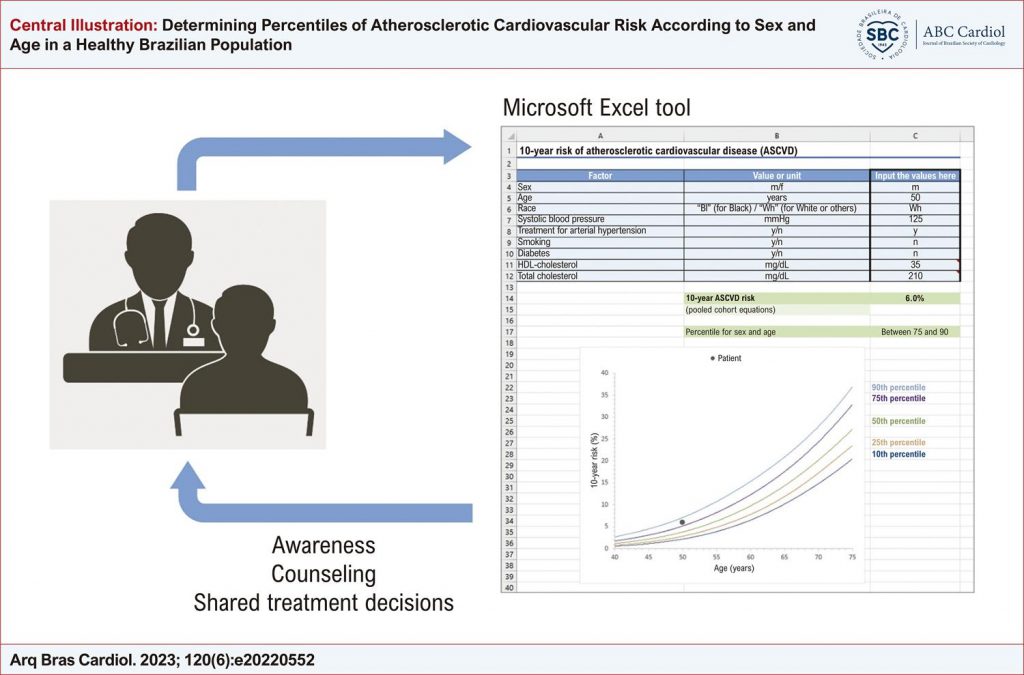 We established ASCVD risk percentiles according to sex and age in a large sample of the Brazilian population. This approach may increase risk awareness and help identify younger persons at low 10-year risk who may benefit from more aggressive risk factor control.