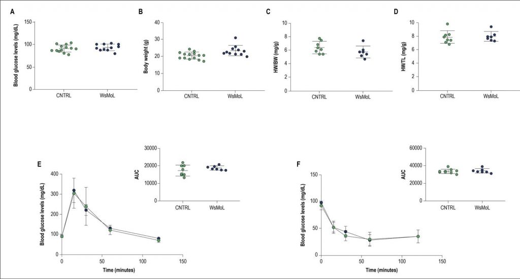 The treatment with WSMoL did not induce changes in blood glucose levels or body weight in comparison with control group. Moreover, the heart weight/body weight and heart weight/tibia length ratios were similar in both groups. Lectin ingestion also did not modify glucose tolerance or insulin resistance. No alterations were observed in electrocardiographic parameters or cardiac action potential duration. The heart of mice from the control and WSMoL groups showed preserved left ventricular function. Furthermore, WSMoL did not induce changes in mitochondrial function (in all cases, p > 0.05).