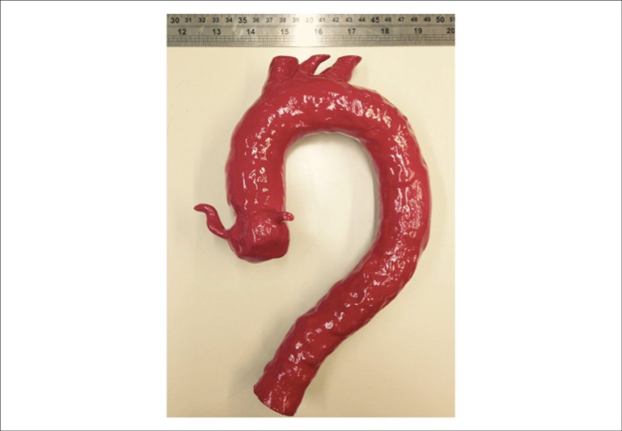 The measurements performed suggest that small changes in the angle of inclination of the percutaneous prosthesis aid in the generation of a physiological hemodynamic pattern, and can contribute to reduce aortic remodeling.
