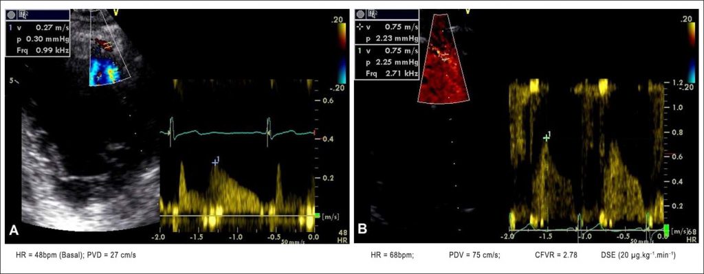 To evaluate the prognostic value of CFVR obtained in the LAD of patients with preserved (>50%) left ventricular ejection fraction (LVEF) who completed a dobutamine stress echocardiography (DSE), considering target HR.
