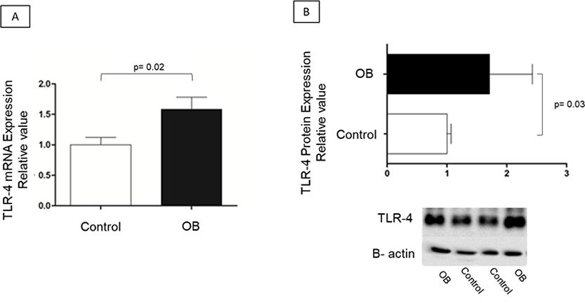 Obesity is a chronic low-grade inflammation condition related to cardiac disorders. However, the mechanism responsible for obesity-related cardiac inflammation is unclear. The toll-like receptor 4 (TLR-4) belongs to a receptor of the transmembrane family responsible for the immune response whose activation stimulates the production of proinflammatory cytokines.