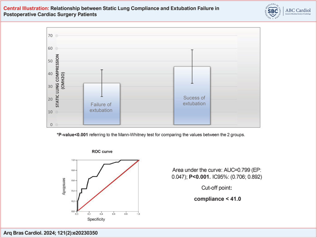 Extubation failure is associated with higher morbidity and mortality, longer mechanical ventilation time, and delayed recovery, prolonging the patient’s hospital stay. Between 4% and 20% of extubated patients fail extubation, i.e., they are reintubated in the first 42 to 72 hours after extubation. According to studies, extubation failure in patients undergoing cardiac surgery can be predicted by several variables, such as the patient’s previous medical history, laboratory data, rapid shallow breathing index (RSBI), surgical variables such as the complexity and duration of the surgery and cardiopulmonary bypass (CPB) time., However, other potential predictors have not been adequately considered, and the protocols used to identify whether the patient is able to take up and maintain ventilation adequately are still general and not widely agreed upon.