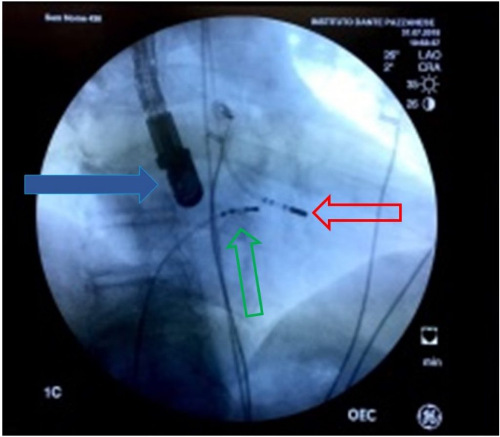 Hypertrophic cardiomyopathy (HCM) can cause obstruction in the left ventricular outflow tract (LVOT), and be responsible for the onset of limiting symptoms, such as tiredness. When such symptoms are refractory to pharmacological treatment, interventionist alternative therapies can be useful, such as septal ablation through the infusion of alcohol in the coronary artery or through myectomy. Recently, the use of a radiofrequency (RF) catheter for endocardial septal ablation guided by electroanatomic mapping has proven to be efficient, despite the high incidence of complete atrioventricular block. An alternative would be the application of RF at the beginning point of the septal gradient guided by the transesophageal echocardiography (TEE). The echocardiography is an imaging method with high accuracy to determine septal anatomy.