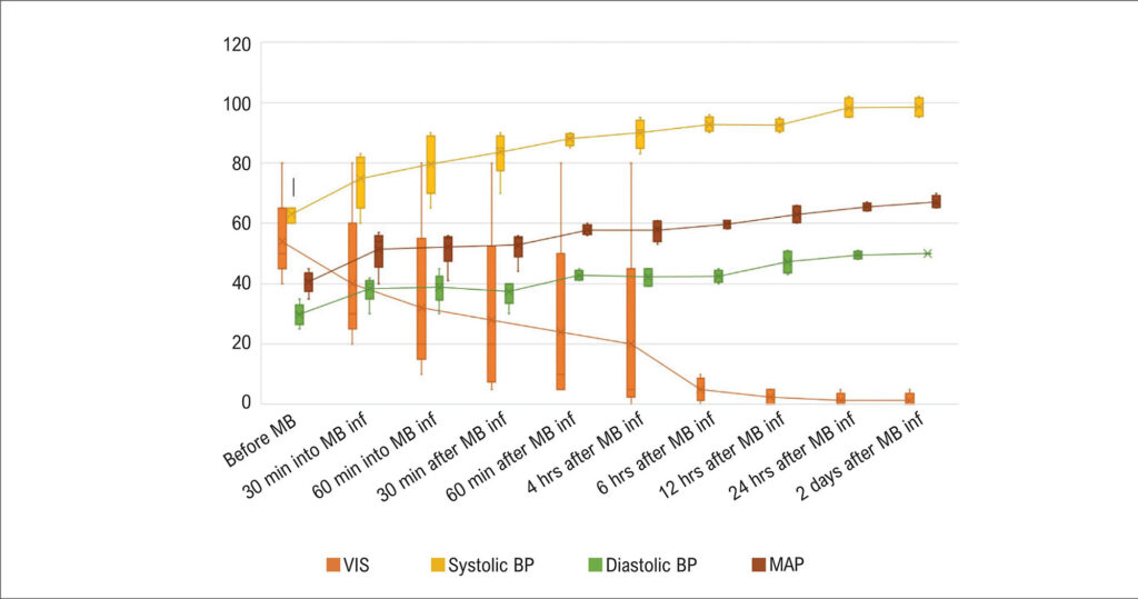 A vasoplegic syndrome is a state of hypotension that develops due to low systemic vascular resistance and is associated with a high mortality rate. Methylene blue is known to improve hypotension and reduce vasopressor requirements by increasing resistance in vasoplegia by inhibiting nitric oxide synthase. Here, we aimed to report on the use and effectiveness of methylene blue to treat severely hypotensive five vasoplegic syndrome cases despite extracorporeal membrane oxygenation. We concluded that Methylene blue can be used as a lifesaving treatment for vasoplegic syndrome refractory to standard supportive treatments, including ECMO.